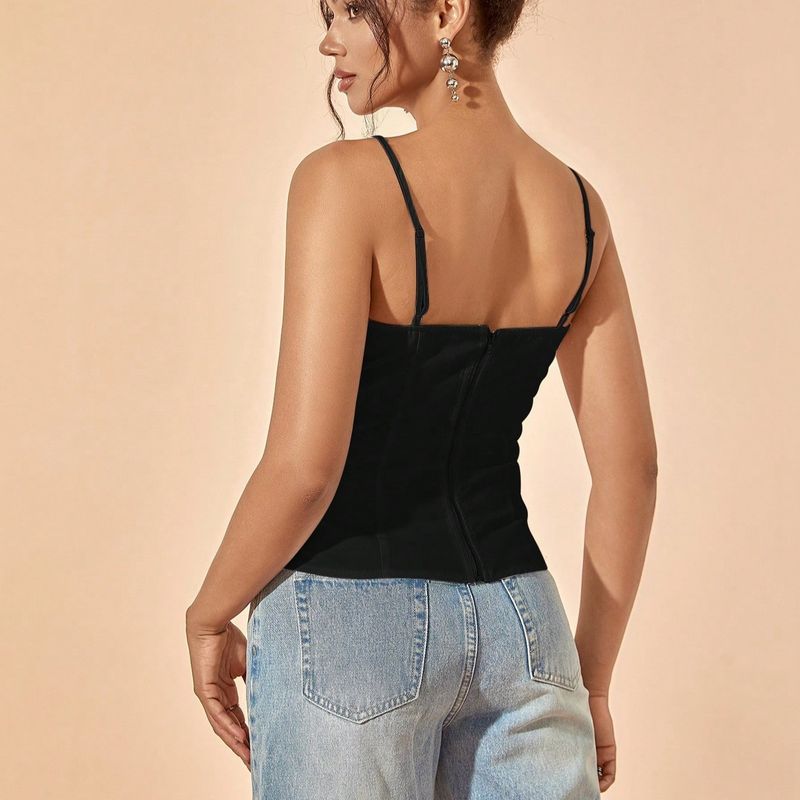 Canotta da donna con spalline sottili, senza maniche e con spalline, nera, per lo streaming live, 2025
