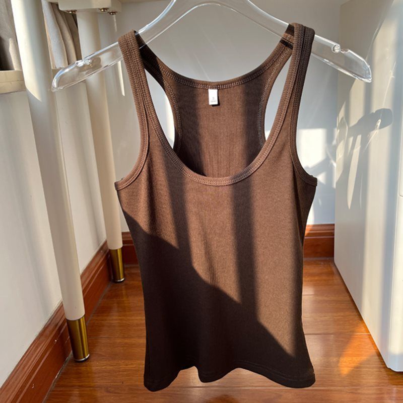 Summer Sexy Hot Girl Spaghetti Strap Tank Top Women's Style Tight Low Round Neck Ribbed Stretch Camisole Top