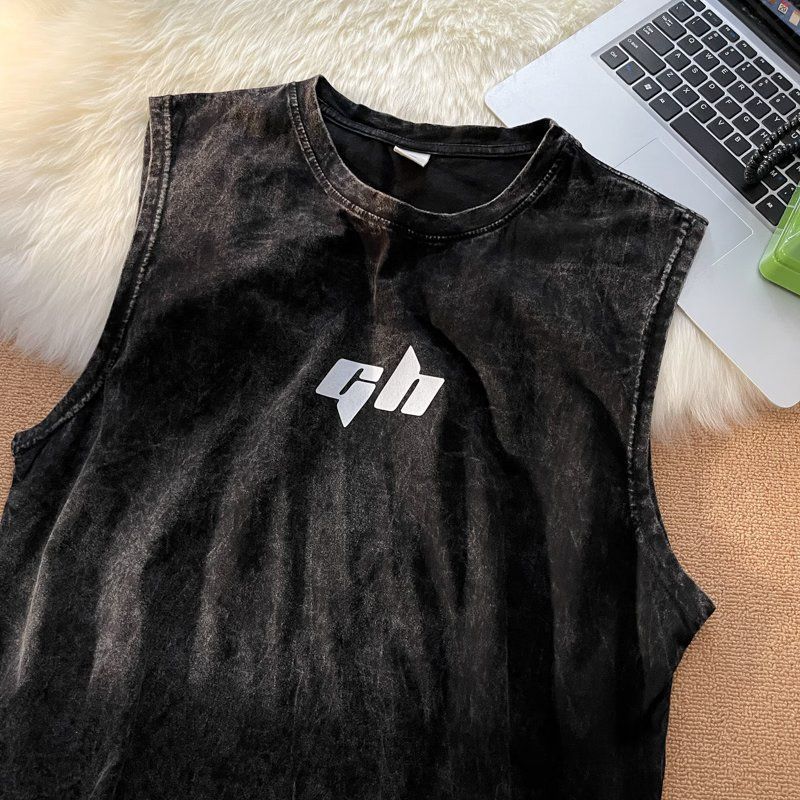 High Street American Sleeveless Tank Top for Men's Summer Thin Washed Old Fried Street Loose Casual Kam Shoulder T-shirt Made of Pure Cotton