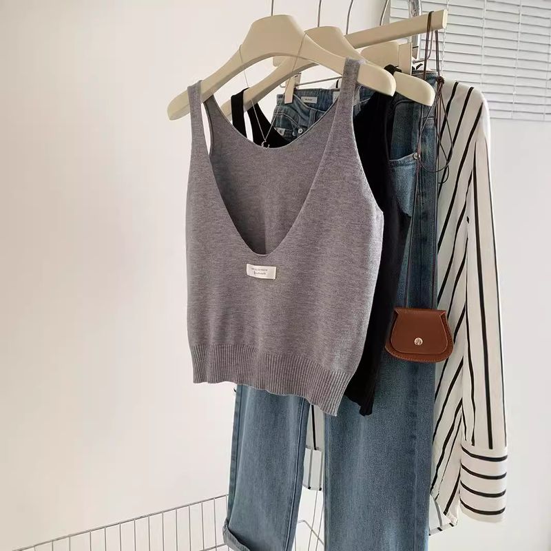 Canotta senza maniche ampia e dolce, stile ragazza americana, di alta qualità, senza schienale, stile primaverile da donna._voghion.com