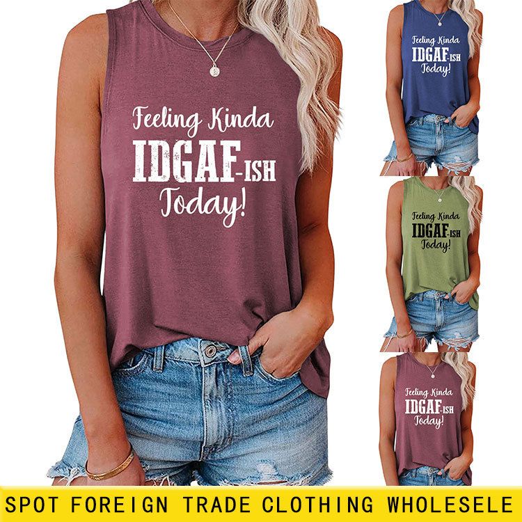 Casual Letter Print Feeling Kinda Simple Fashion Women's Sleeveless Tank Top