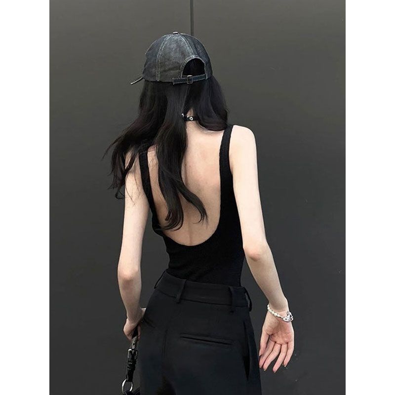 Canotta senza schienale in stile americano per donna, capospalla estivo, reggiseno con schiena a forma di U, strato di base interno integrato con