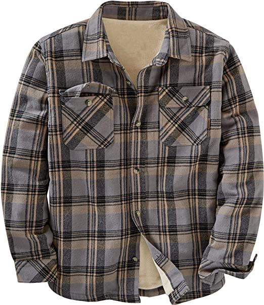Men's outerwear 2022 new long sleeved lapel plaid fleece shirt men's jacket