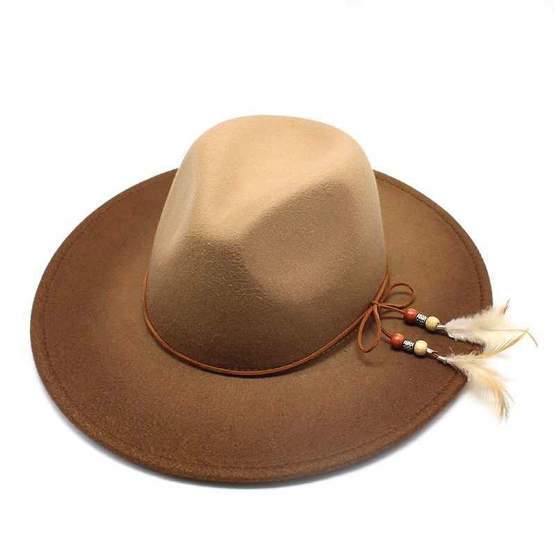 British style big brimmed top hat, new spray painted gradient color woolen jazz hat for men and women in autumn and winter