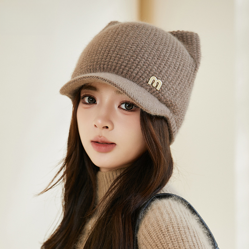 Cappello da baseball in lana lavorato a maglia, stile coreano, stile celebrità di Internet, stile autunno-inverno, nuovo, con orecchie di gatto, per donne