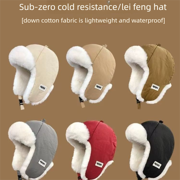 Korean Style Lei Feng Hat for Women, Thickened and Warm for Autumn and Winter, Northeastern Plush Cold-Proof Ear Protection Hat, Outdoor Riding and Skiing Hat