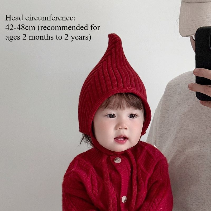 Cappello da elfo rosso per bambini, autunno e inverno, in lana lavorata a maglia, per neonati e bambine