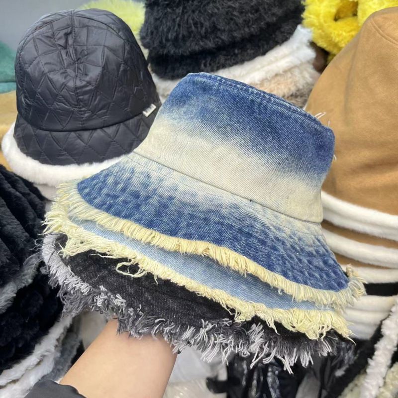 Cappello da pescatore a secchiello versatile con parasole estivo in denim sfumato, versione coreana, 2024