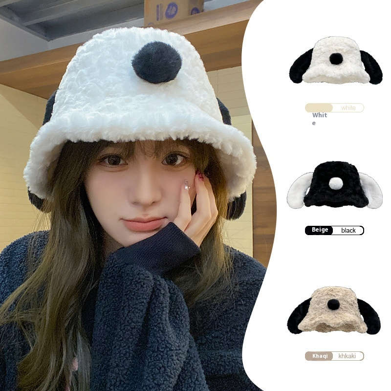 Cappello da pescatore con orecchie da cane, autunno e inverno, edizione coreana, con testa grande, in peluche, con viso carino, piccolo e caldo