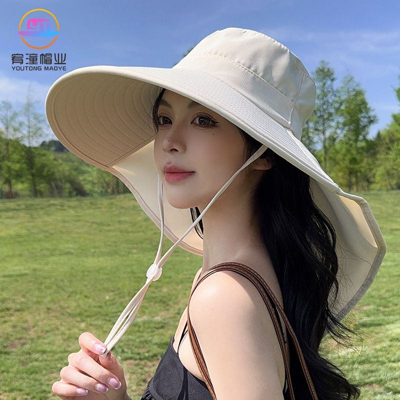 Summer Outdoor Sun Protection Hat with Ponytail Hole for Women, Korean Fashion Large Brim Face Slimming Cape Fisherman Hat