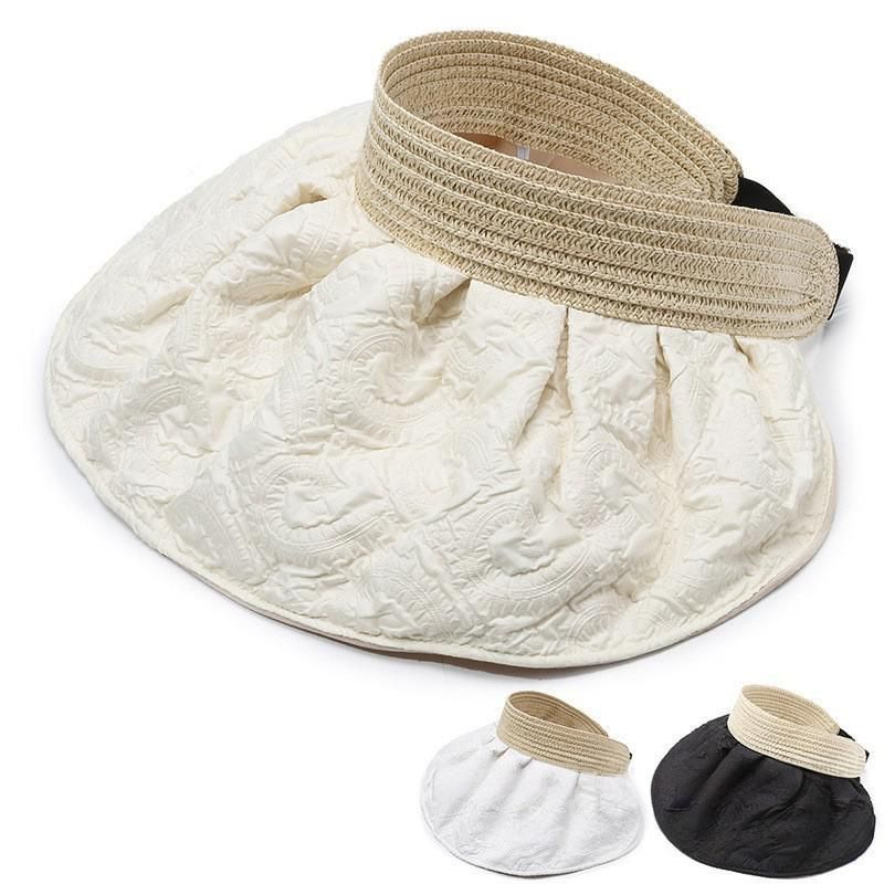 Cappello da pescatore estivo versatile con protezione UV da donna, tesa larga, parasole aperto, in paglia