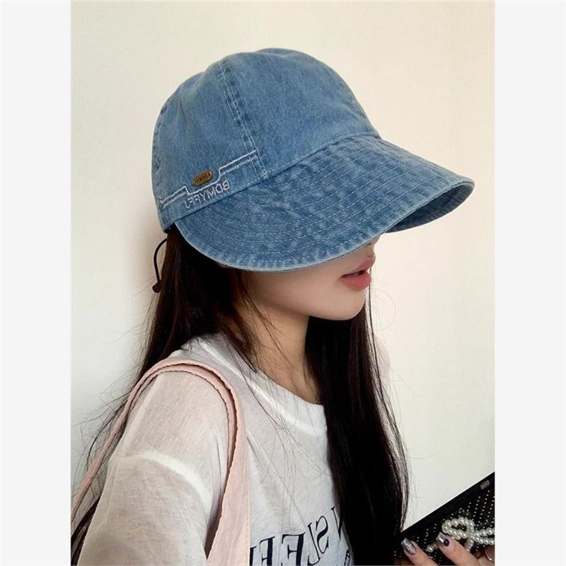 Cappello da pescatore in denim da donna, valorizza la forma del viso, tesa larga per protezione solare, adatto a teste di grandi dimensioni, cappello a becco d'anatra.