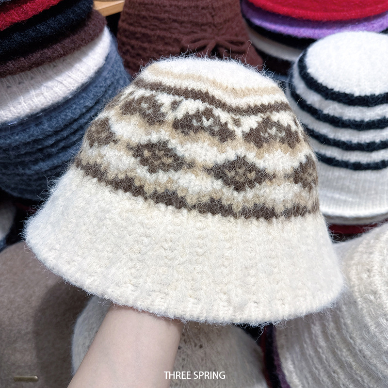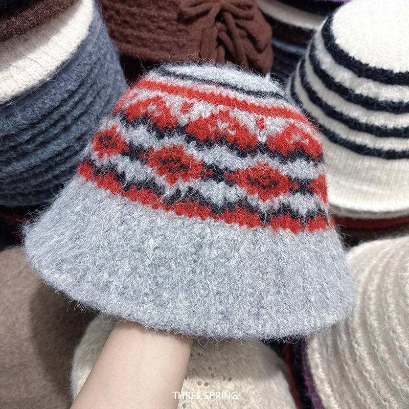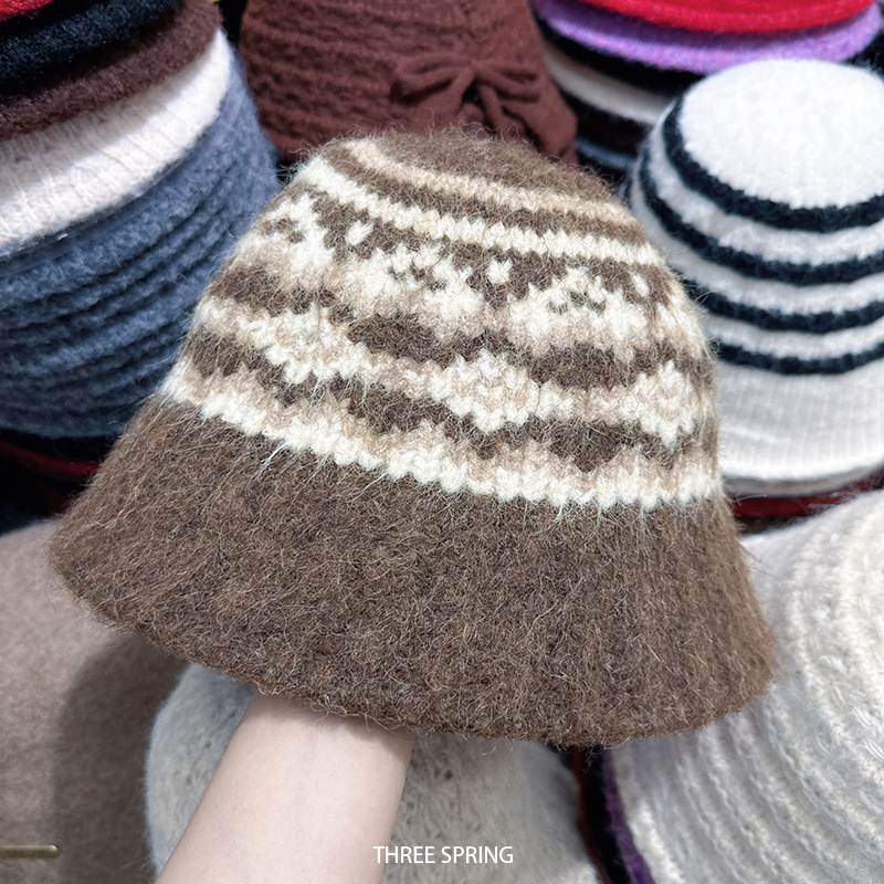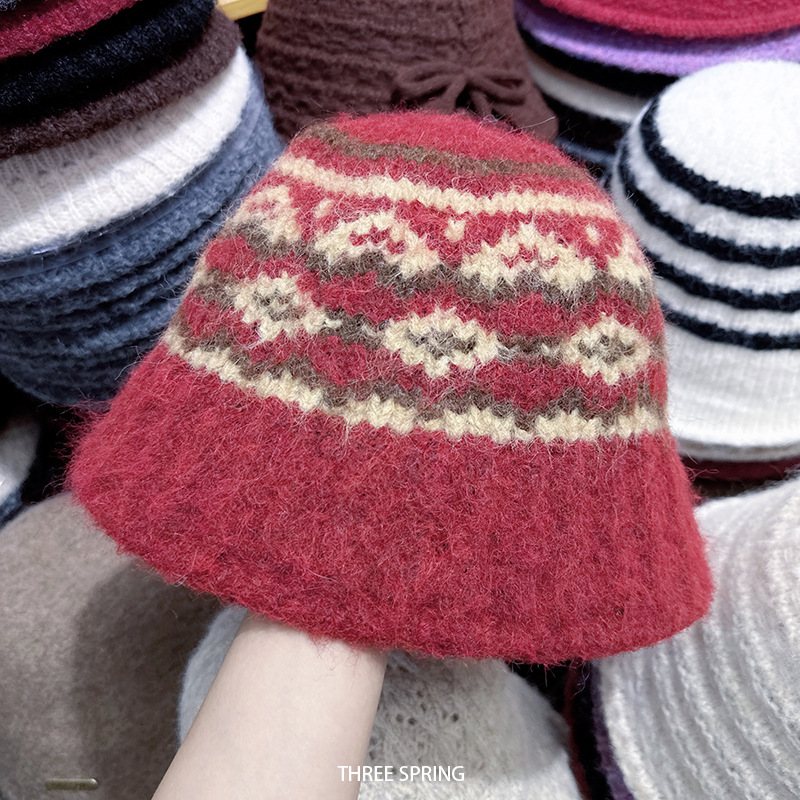 2025 Autumn Winter New Fair Isle Style Knitted Fisherman For Women, Warm Ear Protection Plush Bucket Hat