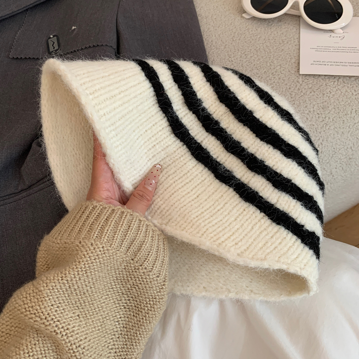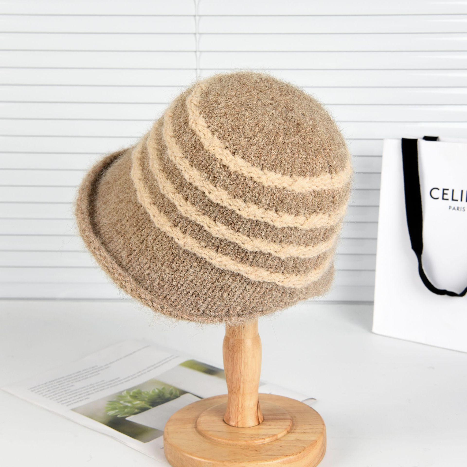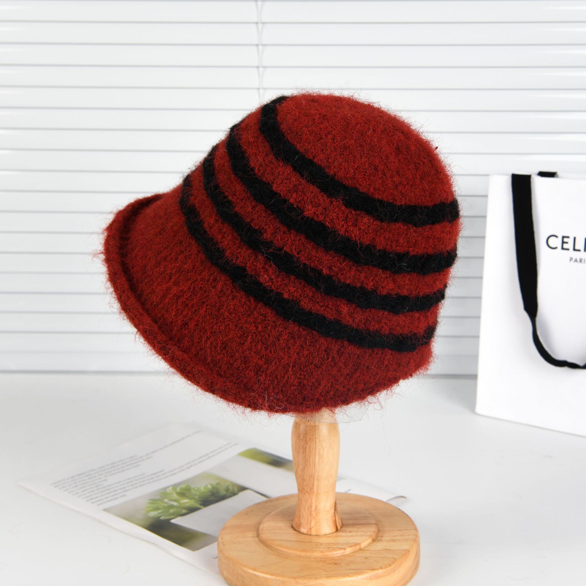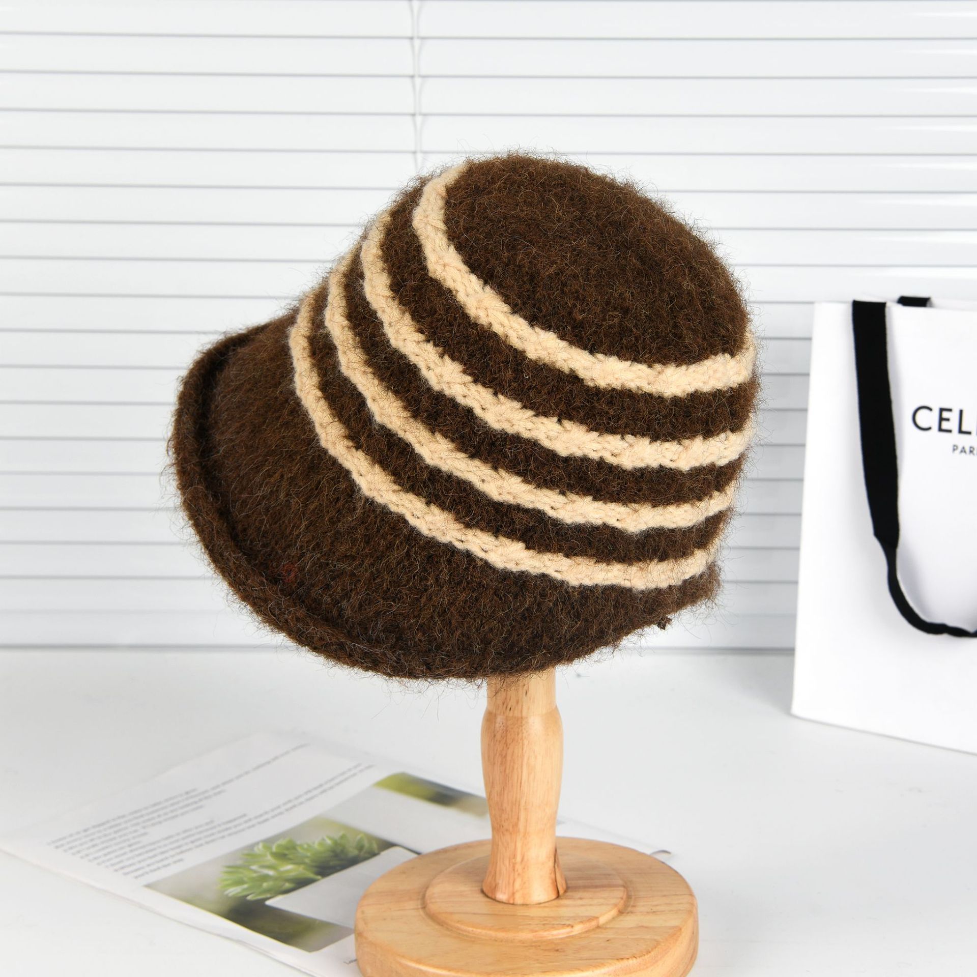 Cappello da pescatore in peluche retrò a righe in stile giapponese per donna, autunno e inverno, caldo, versatile, a tesa larga, snellente per il viso