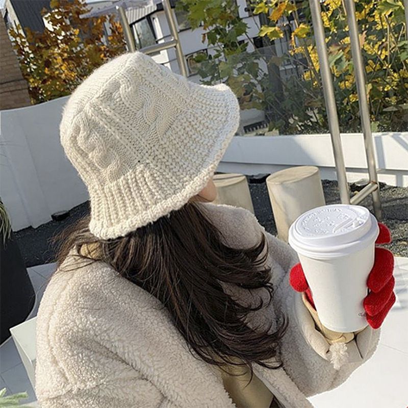 Face-Slimming Fisherman Hat for Women, Korean Style Versatile Hat, Autumn and Winter Knitted Wool Thick Knit Bucket Hat, Trendy New Style