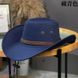 Cappello da sole in denim antivento con tesa larga a tre fili in pelle scamosciata
