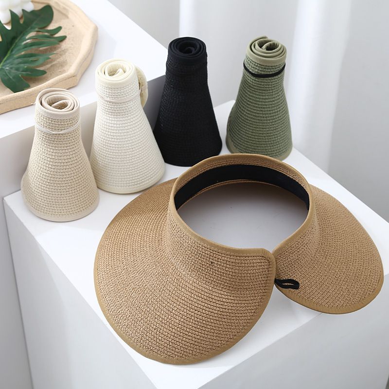 Open Top Sun Hat Summer Women's Sun Protection Hat Wide Brim Straw Hat Beach Hat Large Head Circumference
