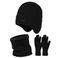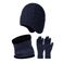 Cappello da uomo in maglia e pile con protezione per le orecchie, cappello termico, misto lana, guanti spessi per esterni, set bavaglino
