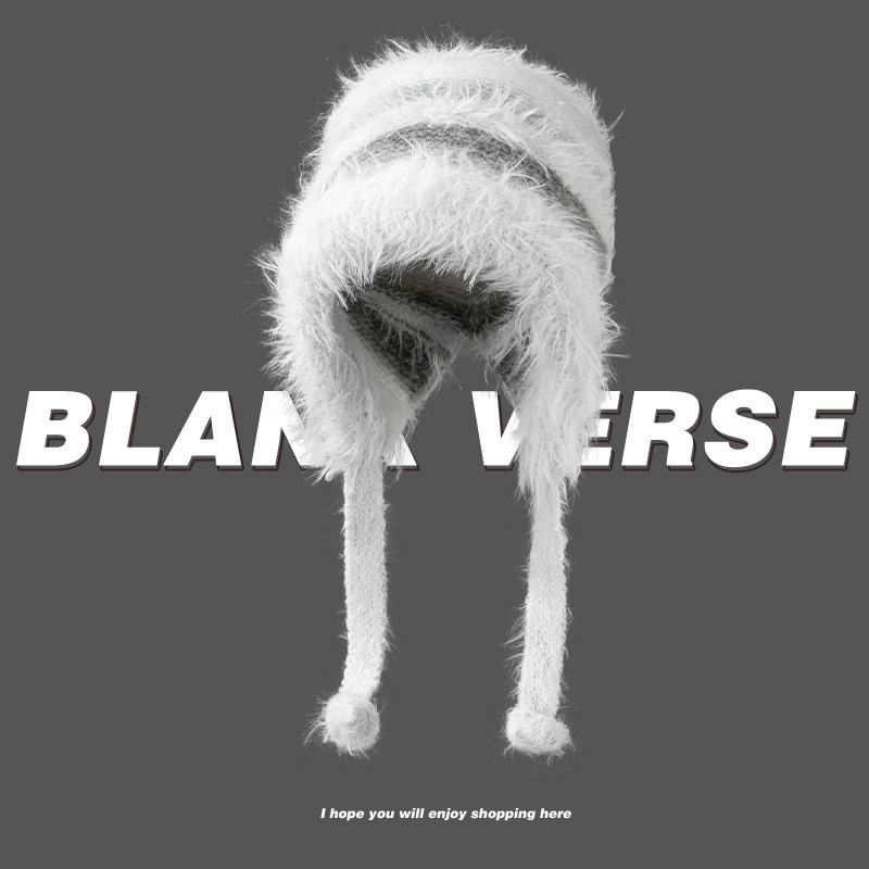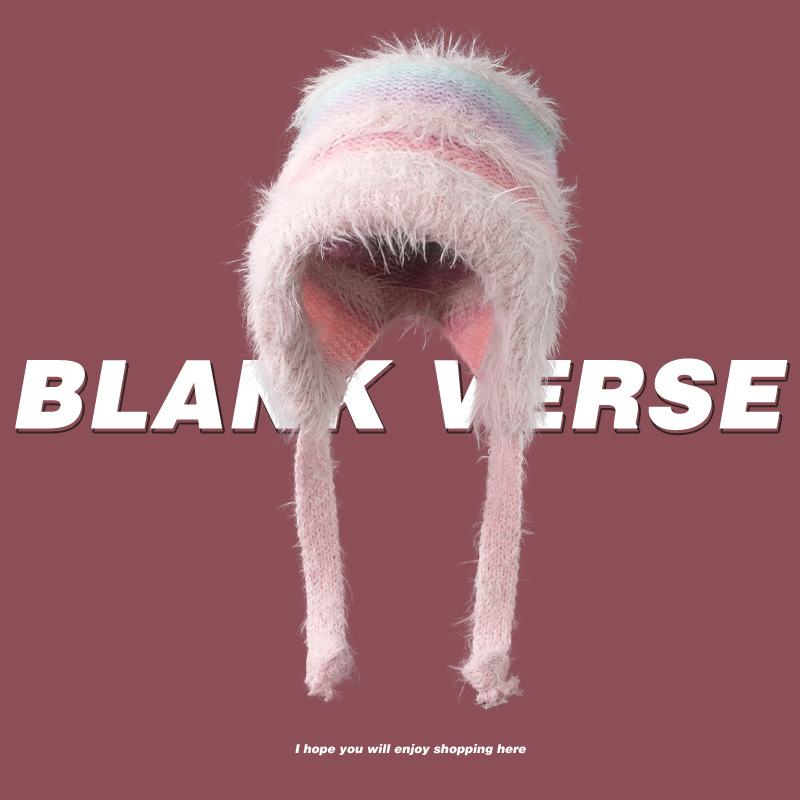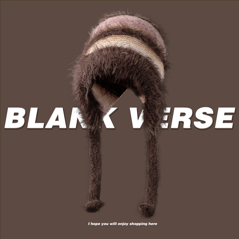 Cappello di lana lavorato a maglia con lacci, protezione per le orecchie, autunno e inverno, colore sfumato, a righe, caldo, in peluche, da donna