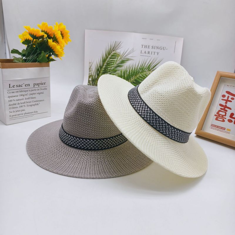 Middle-aged and Elderly Hat Sun Hat Straw Hat Summer Sunshade Elderly Wide Brim Fedora Jazz Hat Outdoor Sun Protection Hat Cool Hat