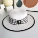 Cappello estivo in paglia da donna in stile designer Panama, con strisce di lettere, intrecciato a mano. Cappelli a secchiello in rafia di alta qualità. Cappello a tesa larga