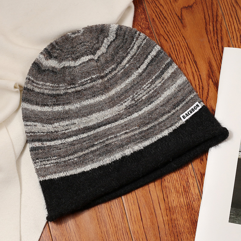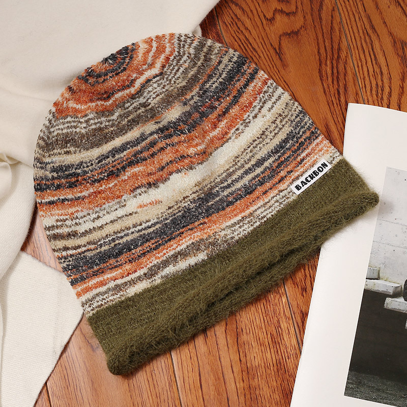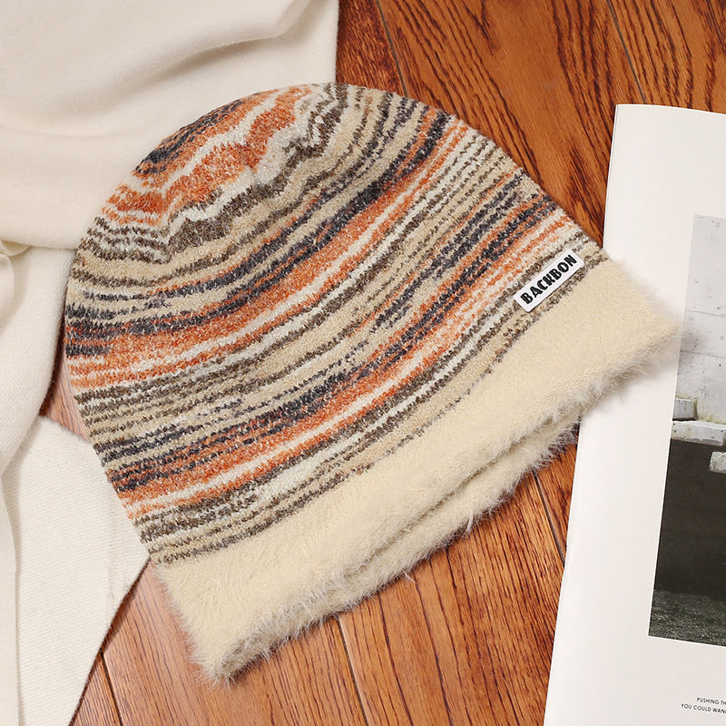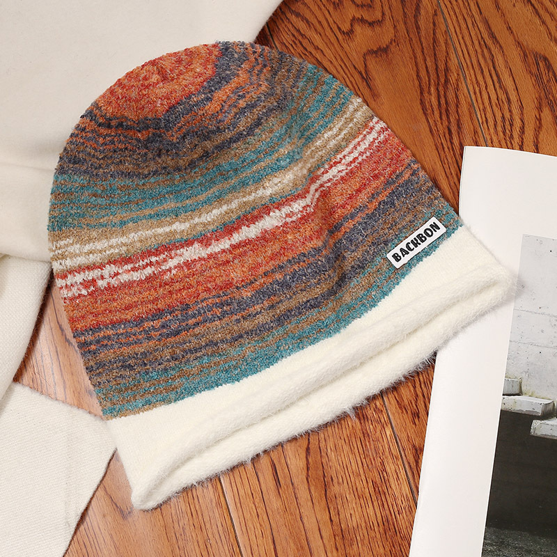 Korean Style Street Retro Color Block Knitted Slouchy Hat for Women Winter New Versatile Warm Ear Protection Hat Striped Beanie