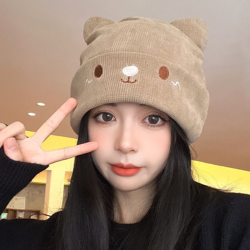 Women's Cat Ear Knitted Hat Large Head Circumference Postpartum Maternity Hat Warm Pullover Cold Hat Autumn Winter Hat Versatile Warmth