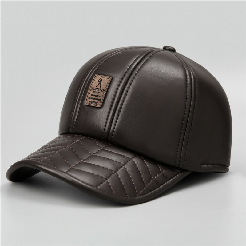 Cappello invernale per uomini anziani di mezza età, caldo cappello in pelle da papà, foderato in pile e spesso, antivento, berretto a becco d'anatra con protezione per le orecchie