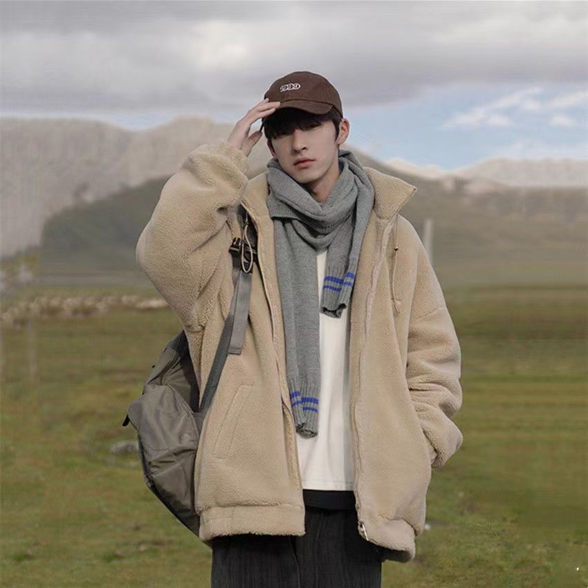 【 Quick Refund 】 Men's Winter Coat Thickened Lamb Fleece Coat Trend Versatile Korean Cotton Coat Casual Couple Cotton Coat