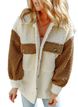 Cappotto di pelliccia ampio e coordinato con colori a maniche lunghe e doppie tasche casual da donna