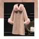Cappotto in pelliccia sintetica da donna – Giacca invernale di media lunghezza con collo in pelliccia di volpe in bianco, rosa nebbia e beige