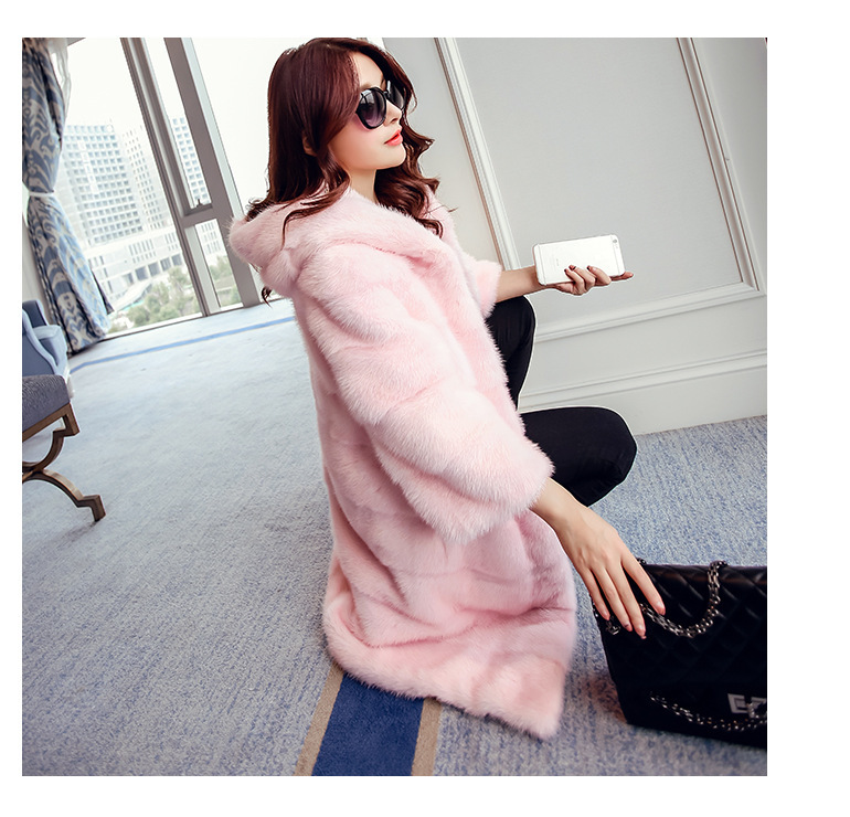 Abbigliamento donna nuovo cappotto di visone cappotto lungo con cappuccio da donna in pelliccia caldo e largo