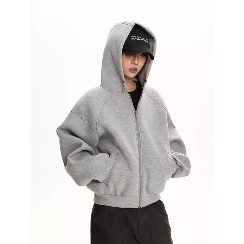 Cardigan con cappuccio retrò in stile destrutturato a strati spaziali pesanti 480G, felpa con cappuccio ampia e alla moda, tinta unita