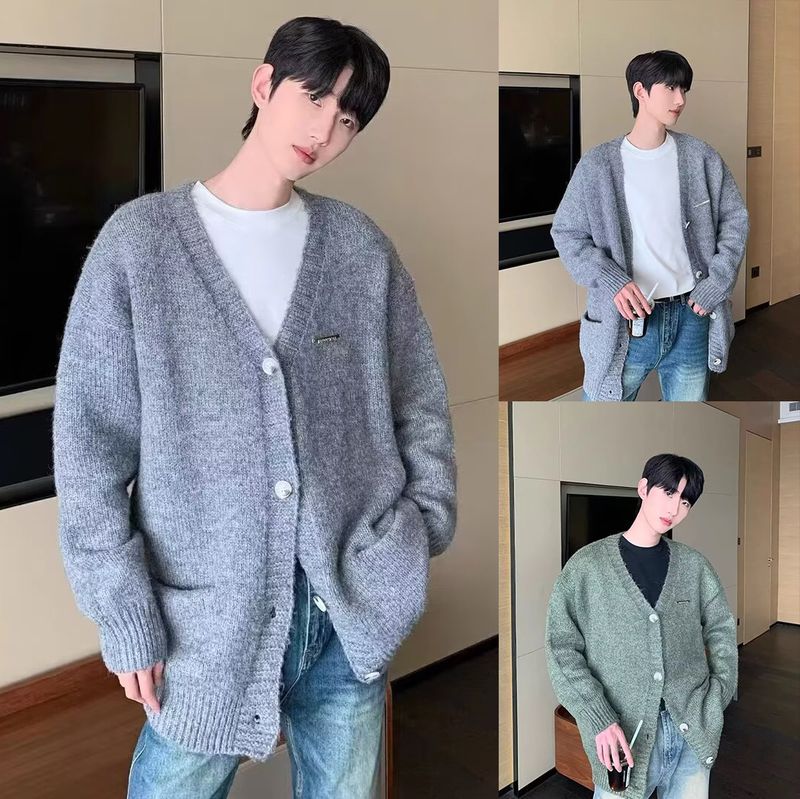 V-neck Cardigan Sweater Knitted Sweater Men Soft Fluffy Half-length Lazy Outerwear