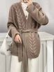Cardigan da donna in maglia di lana autunno inverno, di media lunghezza, spesso, lavorato a maglia con trecce e dettagli allacciati a spiga di grano