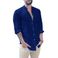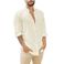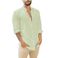 Cardigan in lino da uomo, tinta unita, casual, con colletto alto, a maniche lunghe