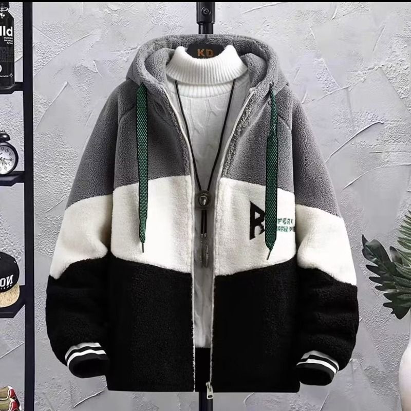Winter lamb fleece cotton coat men's plus size cardigan trendy brand loose and handsome thick hooded granular fleece cotton coat jacket