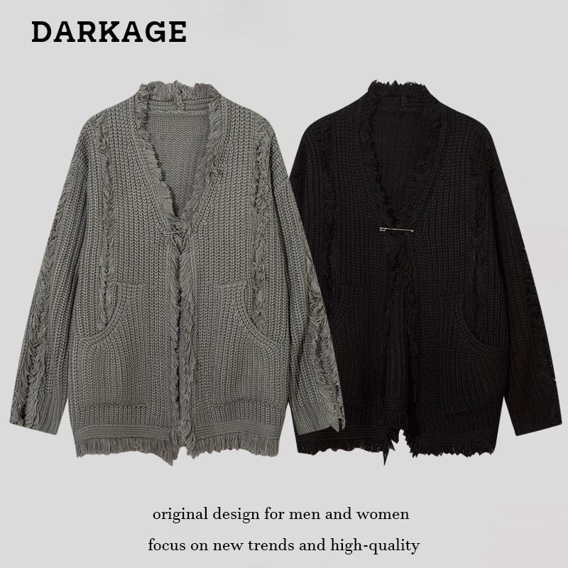 Street Style Tassel Fringe Design Knitted Cardigan for Men and Women, Loose and Casual Loose-Fit Sweater