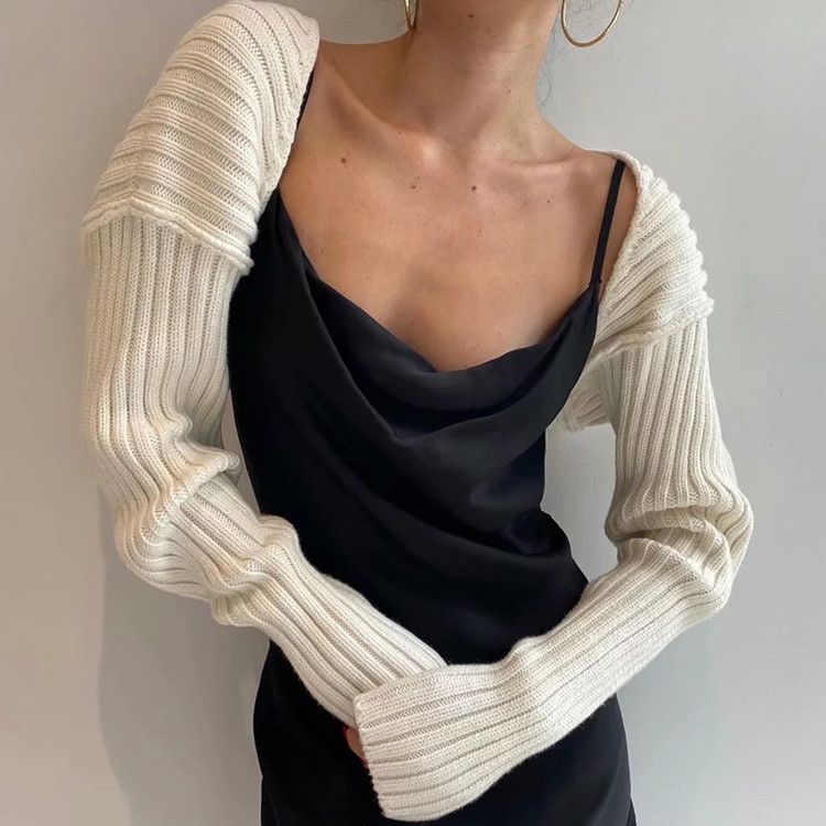 Cardigan lavorato a maglia ultra corto con scialle a maniche a pipistrello, stile streetwear da donna, autunno inverno 2020
