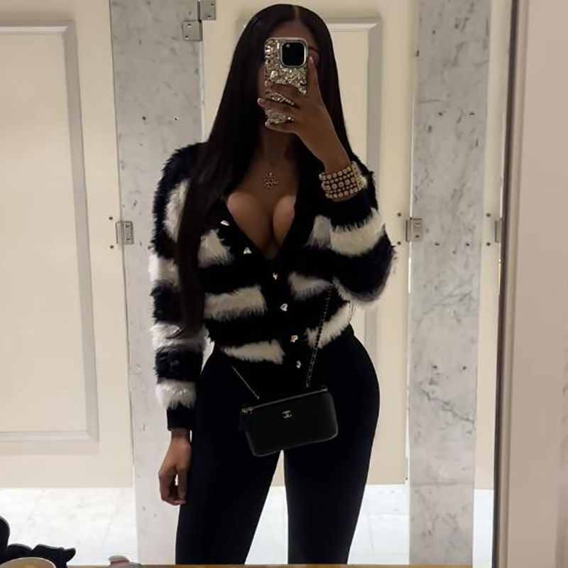 Cardigan monopetto in maglia a righe bianche e nere, stile invernale da donna