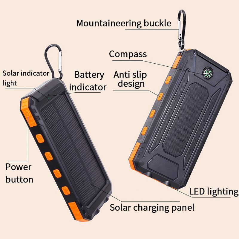 Caricabatterie solare USB da 20000 mAh, impermeabile, da viaggio, per esterni, con batteria esterna per iPhone, Samsung, Huawei.