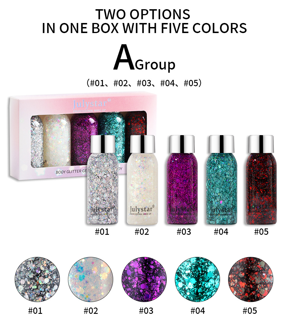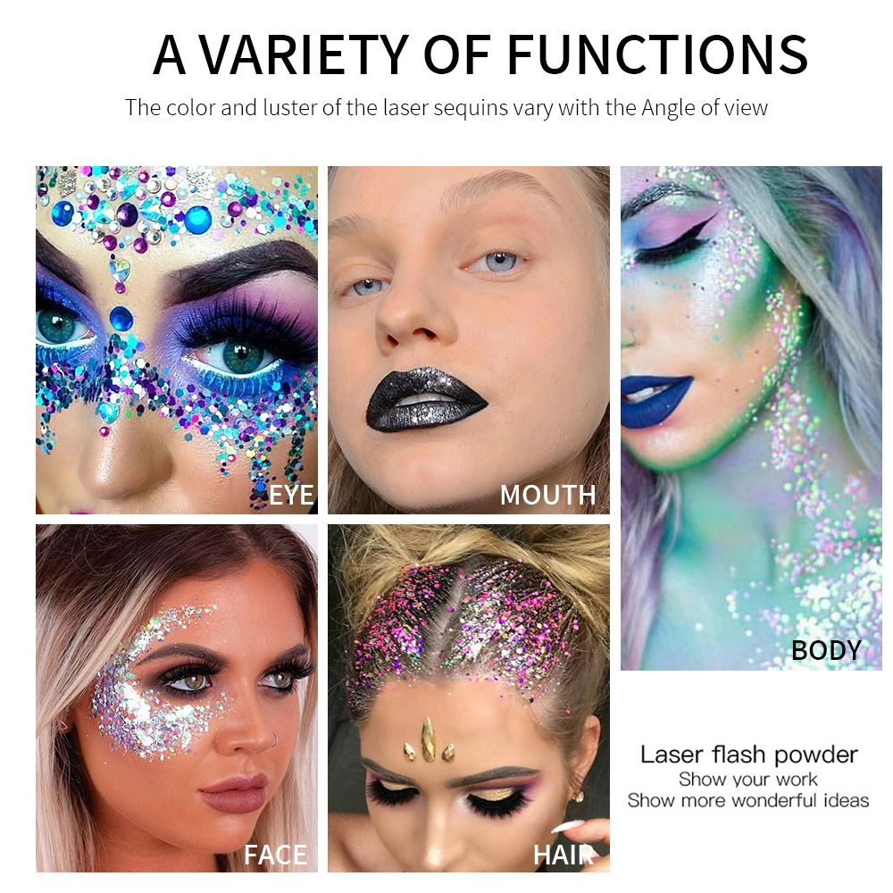 Carina Set di ombretti colorati per il trucco da palcoscenico liquido con paillettes blu per viso e corpo