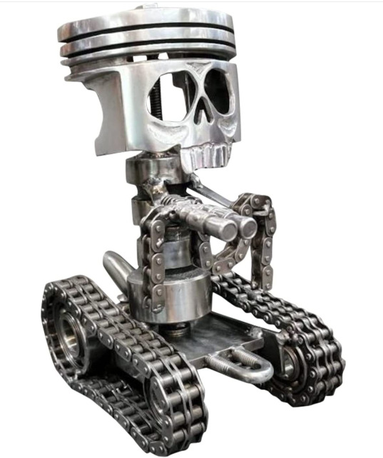 Scultura in metallo con teschio a forma di pistone Scultura in metallo con teschio a forma di pistone Statua artistica