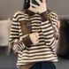 【 Cashmere Family】 Maglione da donna con cappuccio in lana, felpa corta con cappuccio, strato interno in maglia oversize a righe