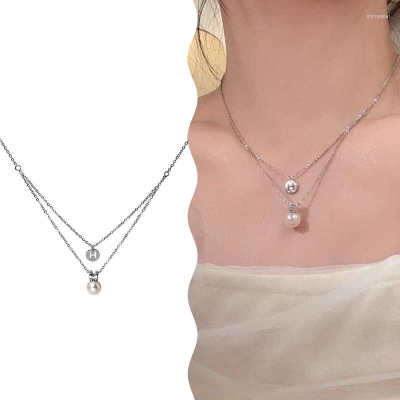 Catene Elegante Dolce Due Strati Collana Con Pendente Di Perle Per Donne Ragazze Catena Leggera Per Clavicola Moda Choker Gioielleria Raffinata
