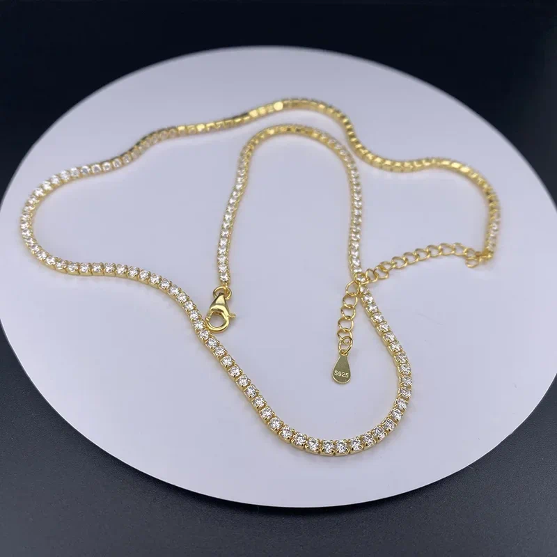 Catene Sottili 2mm Moissanite Diamante Catena Cubana Argento Vero Oro Collana Per Le Donne Gioielli Zircone Pietra Collo Collares