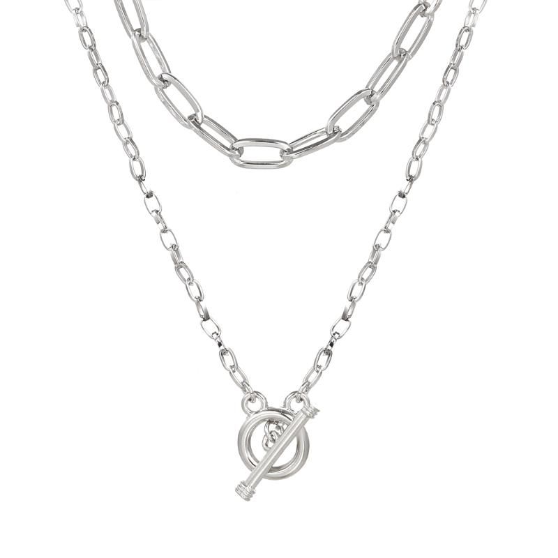 Catene Vintage Catena Spessa OT Fibbia Collana Girocollo Per Le Donne Punk Argento Colore Metallo Geometrico Stratificato Gioielleria di Moda