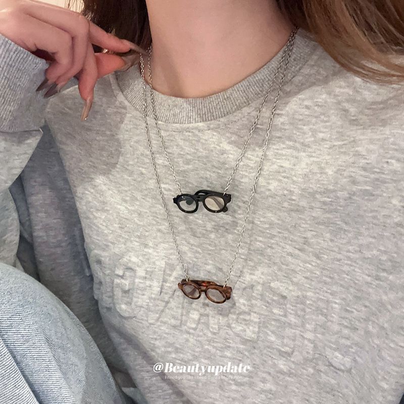 Celebrità di Internet con collana di occhiali in resina eccentrici, design di nicchia, catena per clavicola creativa, personalità, dolce e