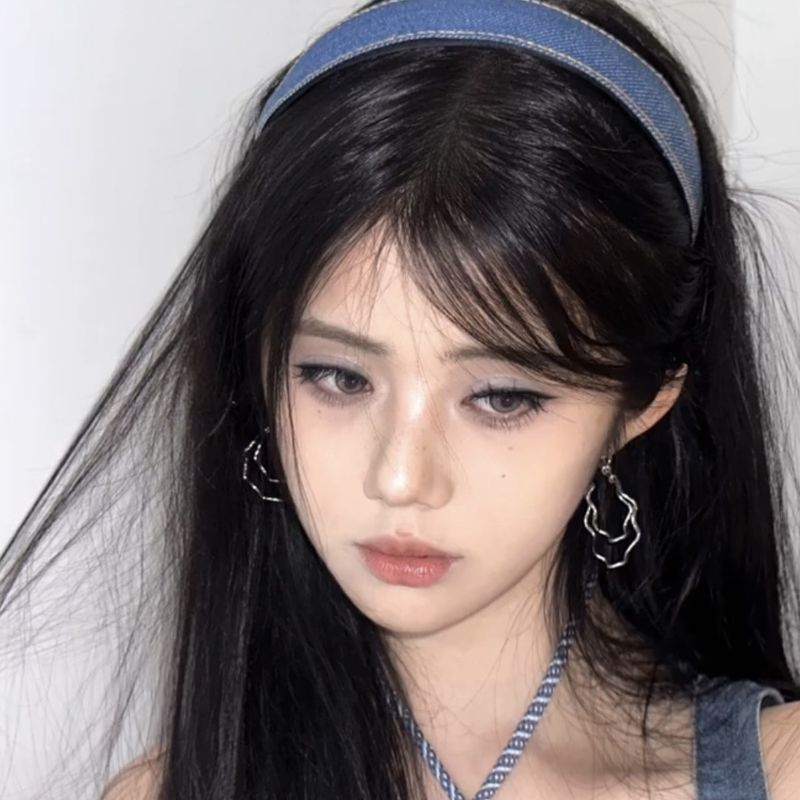 Minimalist Blue Denim Fabric Headband Blogger Style Classic Elegant High-end Hairband Hair Accessory for Women