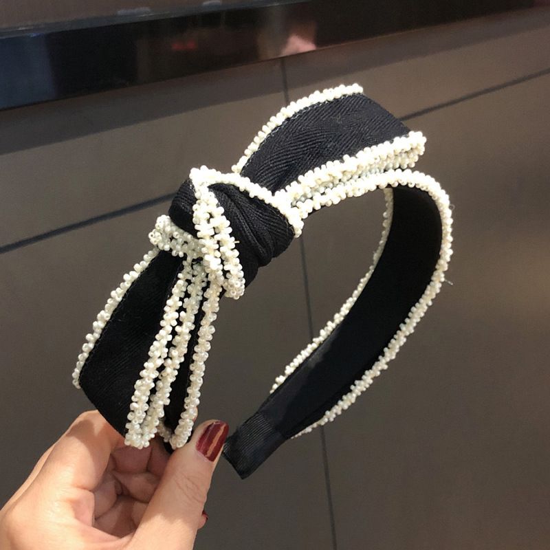 Korean Style Women's -Style Bowknot Pearl Headband Wide Elegant Hairband Fashion Fabric Hair Tie Hair Hoop